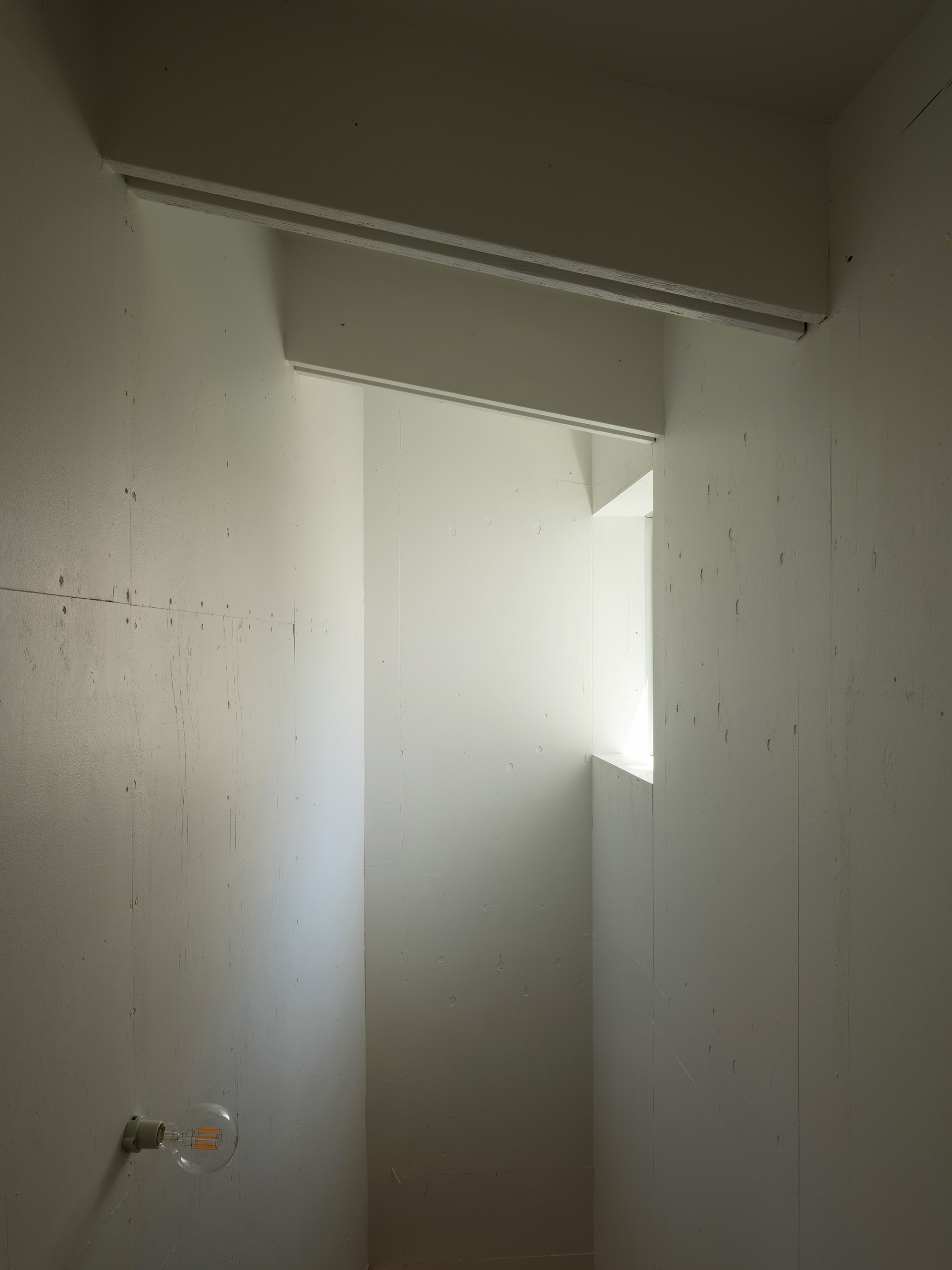 変化を受け入れる架構 新神戸駅からほど近い敷地に立つ、ジュエリー作家の自邸兼アトリエである。建主からは住まいの機能に加え、アトリエ、撮影スタジオ、馴染みの客と交流をする土間、資材を保管する倉庫などが求められた。 敷地のすぐ裏には、ウィリアム・メレル・ヴォーリズ(1880〜1964年)が1928年に建てた旧神戸ユニオン教会がある。連続した木架構が美しいこの建築は現在、老舗ベーカリーによって、カフェとして活用されている。変化を受け入れる、おおらかなあり方を参照し設計に着手した。竣工時に美しさのピークがあるのではなく、生活と共に育っていくような建築を目指した。 間口が狭く奥行きが長い不定形の敷地に対し、門型フレームを並べ、背後の旧神戸ユニオン教会に向かって末広がりになっていく内壁のない空間とし、カフェを訪れる人々にもこちらの存在を空間的に意識させるようなことを考えた。真壁納まりにしたのは、DIYの補助線としたり、光や影をとらえたり、さまざまな周期の変化を取り入れるためである。この架構に対してスラブを差し込んでいくことで場を構成し、そこに建主が家具を設えていく。 まず、奥行きいっぱいのスラブによって、1階と2階が分割される。1階は天井高さを4mとしたので、創作に没頭し、散らかしても天井が高いので気にならない。さらに1階奥にもう1枚スラブを入れ、半地下はデザイン作業をするアトリエ、中2階を撮影などを行うスタジオというように分割した。また2階の天井高さは低いところで2m、高いところで3mというように、迫った隣家と反対側へ雨を流すために片流れの屋根とし、3次元的に捻れた柔らかい空間とした。そこに非構造体である水回りのボックスが捻れる屋根を除けて据え付けられ、食べる場所と寝る場所を隔てている。また、外に飛び出た階段室はフライングバットレスのように架構を外から支え、ハイサイドライトをもつ仄暗い空間とした。ほとんど家で作業を続ける建主にとっての気持ちを切り替えるための空間でもある。 竣工から数カ月がたち、建主の暮らしが架構の存在感を凌駕しつつあり、たくましい。コロナ禍をものともせず淡々と生活を組み立てている。時間の経過と共に変化し、街に根付いた教会建築のようなあり方を目指した。 設計:ツバメアーキテクツ |