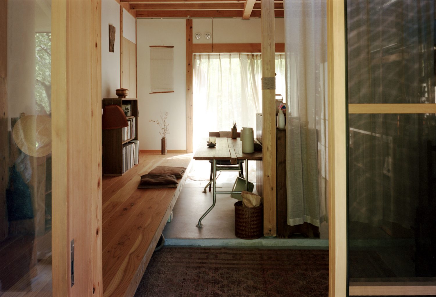 働き方、暮らし方の価値観が揺さぶられ、家族の姿が大きく変化する現在、住宅は単独で完結する存在ではなく、仕事や地域、福祉と連続するものとして再考される必要がある。虫村は、本来は社会や地域と分かち合うべき、労働や子育てといった役割を家族やひとつの住戸が過度に引き受けてきた状況の輪郭を緩め、新たな暮らし方を探るための、開かれた実践である。