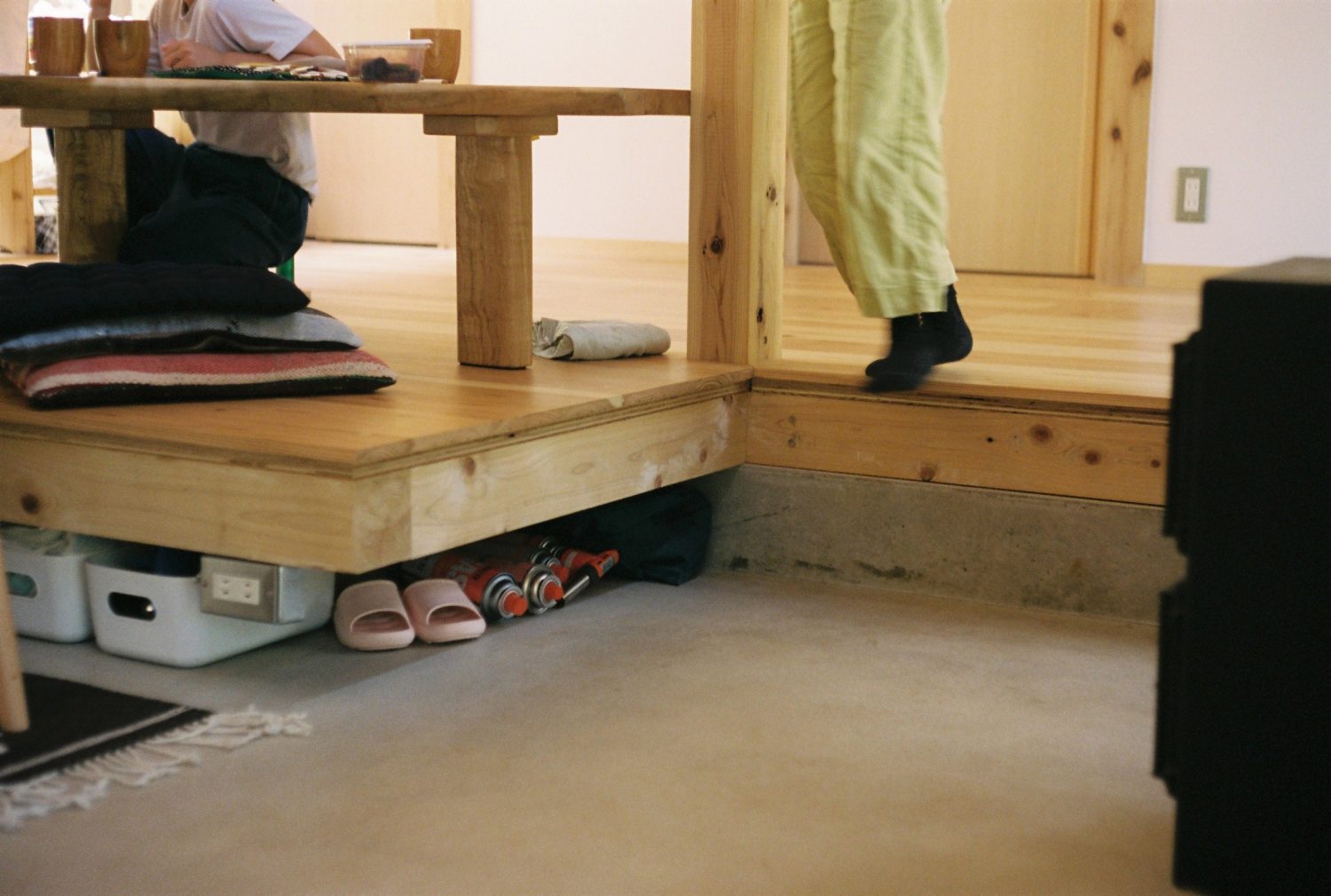 前面の深い軒下と縁側は、住民が集まり食事をする場として、子ども同士の遊び場として、日々の野良仕事の場として使われる。複数世帯が住戸間を行き来しながら生活している中で、土間は暮らしの選択肢や家族の関係性を固定化されたものから、別の可能性へと開いているように見える。